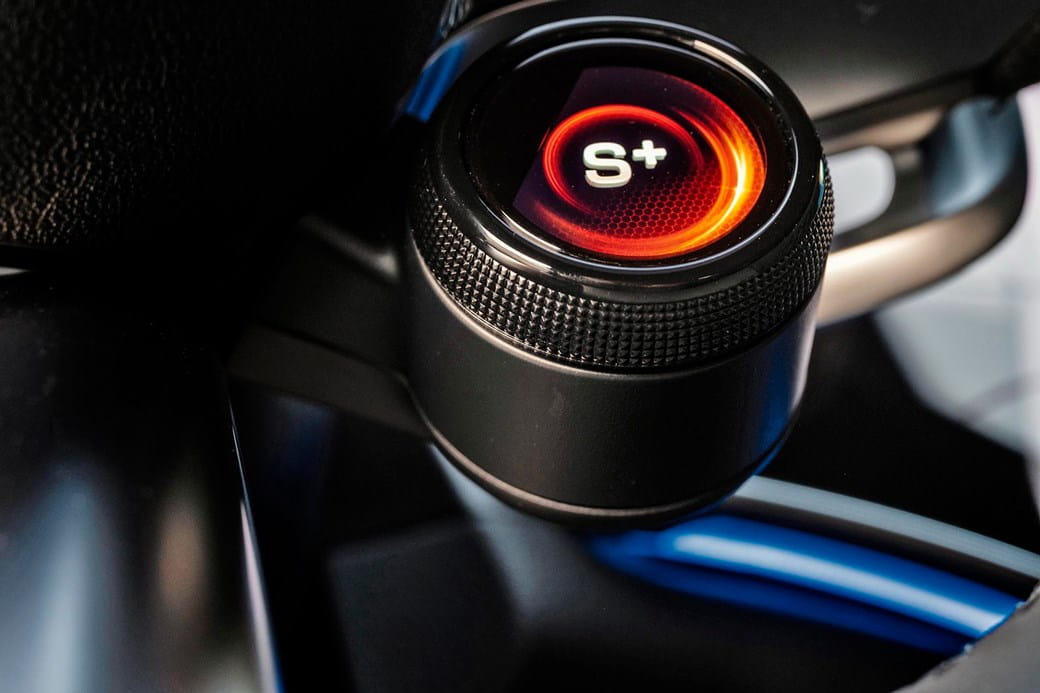 Otáčaním pravého ovládača na volante sa mení režim jazdy, pričom riadenie sa pri prechode z režimu Comfort na Sport+ stáva ostrejším.