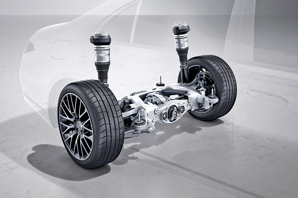 Všetky fungujú rovnakým spôsobom, a to tak, že do určitej rýchlosti sa zadné kolesá natáčajú opačne ako predné, aby sa zvýšila agilita, a pri vyšších rýchlostiach sa natáčajú rovnako ako predné, aby sa zlepšila stabilita. Rozdiel je v tom, že pri základných modeloch EQS je maximálny uhol natočenia zadných kolies 4,5°, pričom pri vyšších úrovniach výbavy sa tento uhol zvýši na 10° (alebo sa dá dokúpiť ako nadstavba). AMG EQS 53, na ktorom sme ju testovali, má vlastnú verziu a zvládne až 9º.