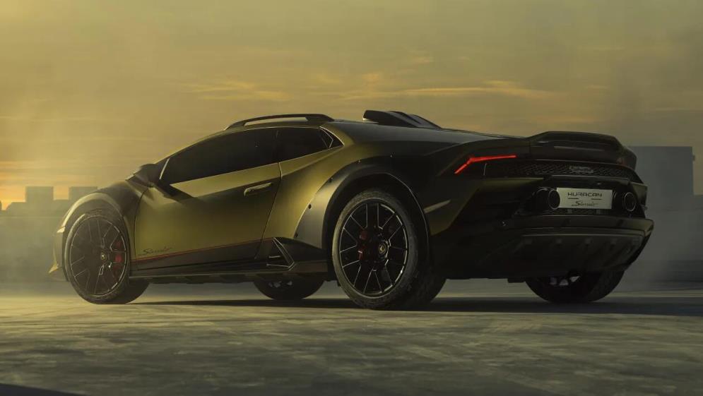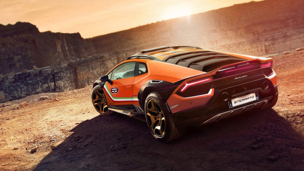 Na prednej časti Sterrata sa objaví dvojica LED svetiel, zatiaľ čo rozšírené podbehy kolies konceptu sú prenesené. Po titánovej ochrannej klietke a predných a zadných protišmykových doskách, ktoré sme videli už skôr, nie je ani stopy, hoci vzadu je malý spojler, ktorý sa nachádza na modeli Huracan EVO.