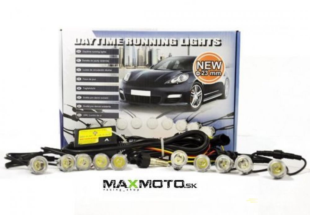 LED svetlá DRL 502 pre denné svietenie s homologizáciou ECE R 87 - 2 x 5ks 1W vysoko výkonných LED s nízkym prúdovým odberom a funkciou automatického zapnutia/vypnutia, vodotesné, 5 samostatných svetiel, priemer 23mm.