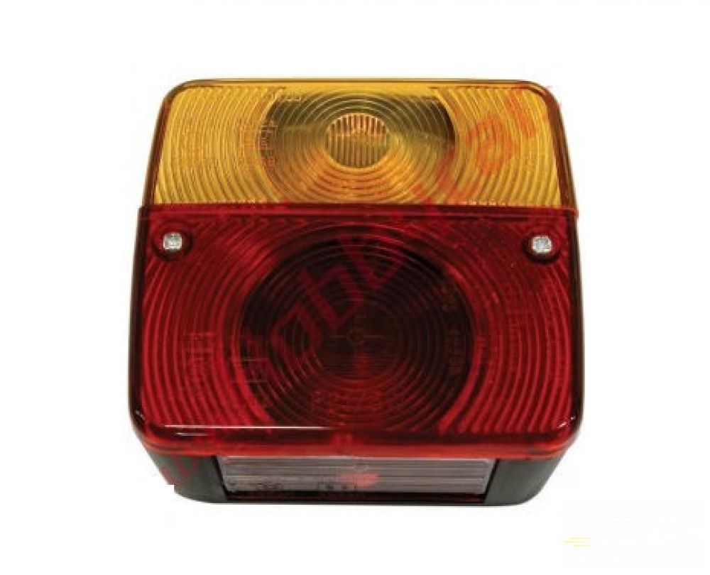 Združená zadné svietidlo vhodná na všetky typy vozidiel a prívesov obsahuje obrysové svetlo, brzdové svetlo, smerové svetlo (smerovka) a osvetlenie ŠPZ registračnej značky, obsahuje štandardné žiarovky 12V 21W a 12V 21/5W, celoeurópska homologizácia E11 zaručuje bezproblémové použitie vo všetkých krajinách Európy, bočná priesvitná časť zaisťuje správne osvetlenie ŠPZ registračnej značky, rozmery 105x95x52mm (šírka x výška x hĺbka)