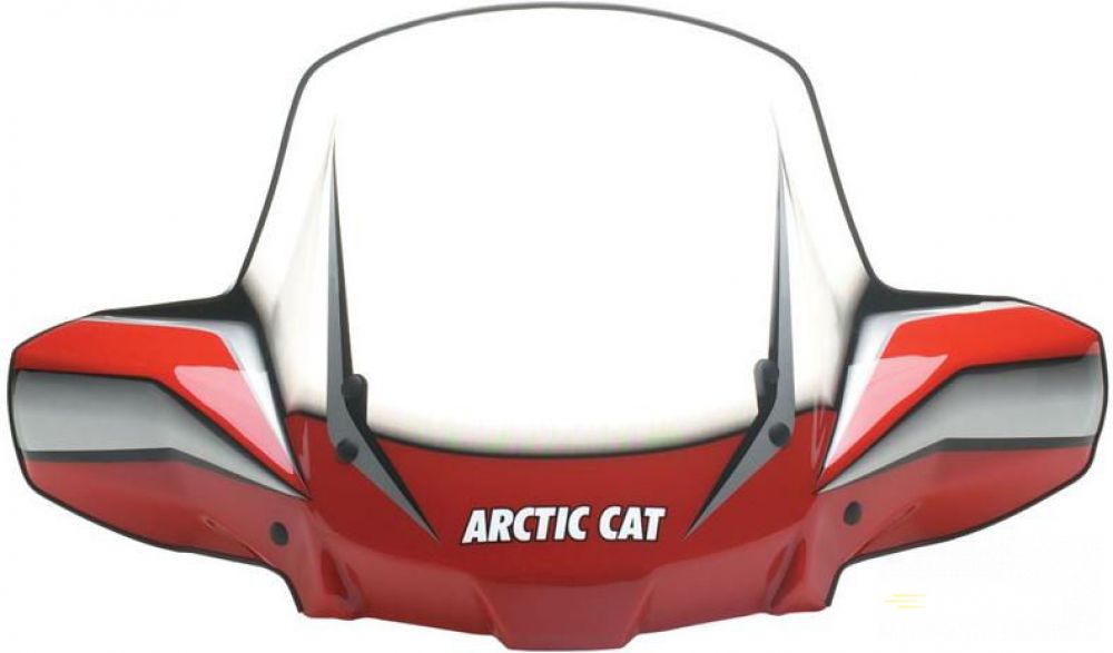 Vysoko kvalitné plexi pre štvorkolky Arctic Cat, číre s červeným akcentom, dva vstavané držiaky nápojov, odnímateľné počas 10 sekúnd bez použitia nástrojov