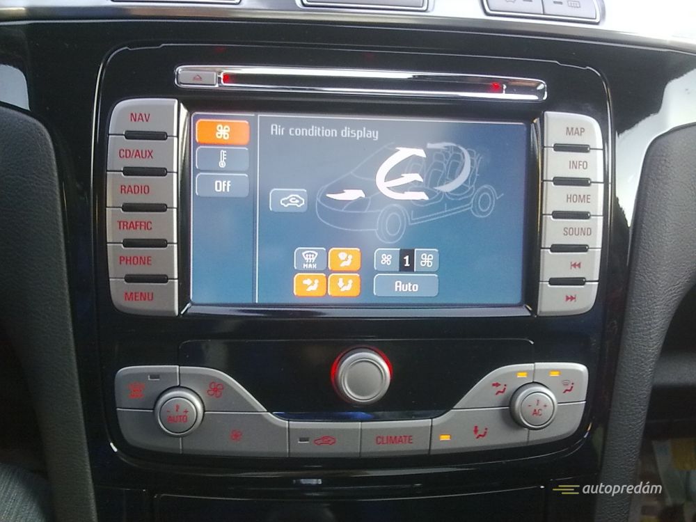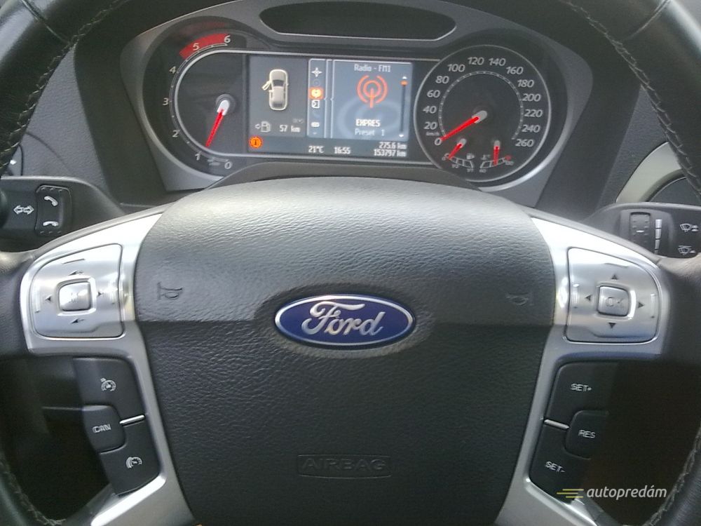 Výbava: panoramatická strecha, xenonové svetlomety s čírou optikou a prisvecovaním do zákrut rohovkami, veľká dotyková navigácia, vyhrievané sedačky, vyhrievané čelné sklo, kožený interiér (čierna koža), palubný počítač, dvojzónová automatická klimatizácia, tempomat, multifunkčný volant, originálne rádio Ford s navigačným systémom a ovládaním pomocou veľkej dotykovej obrazovky a 5.1 kanálovým zvukom - spolu 11 reproduktorov + subwoofer zabudovaný v podlahe, čítanie CD, mp3, USB port, aux vstup, možnosť plnohodnotného ovládania telefónu na displeji rádia cez Bluetooth, možnosť pripojenia cúvacej kamery, bezkľúčové štartovanie, odomkýnanie a zamkýnanie vozidla,