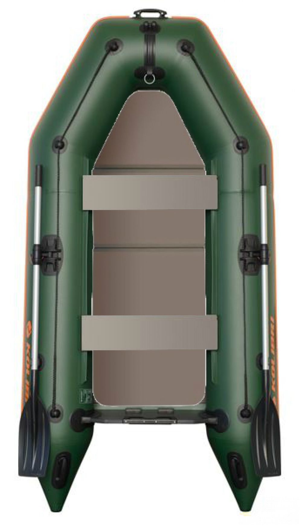 Nafukovací čln Kolibri KM-260 D zelený, s drevenou skladacou podlahou a nafukovacím kýlom.