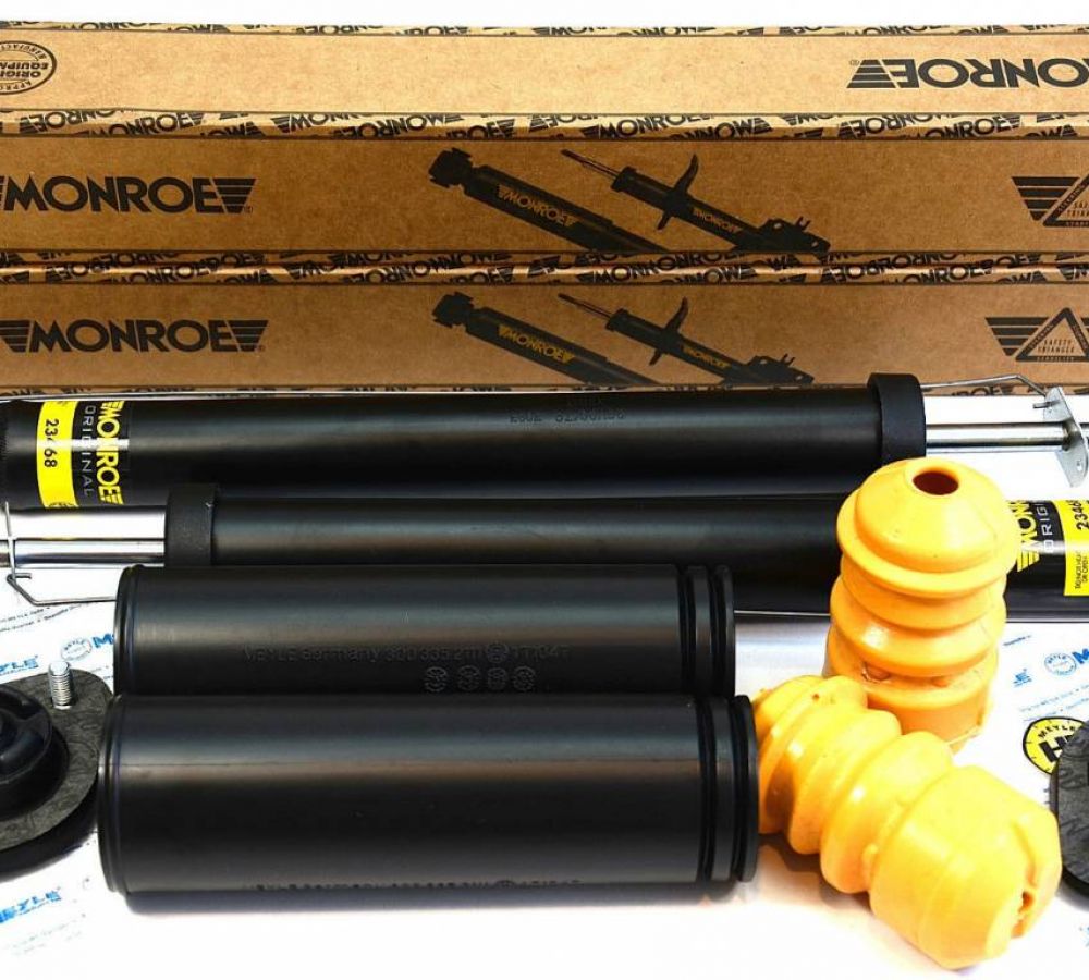 Sada tlmičov, uloženia tlmiča a prachoviek zadná Monroe BMW 318d 320d E46
