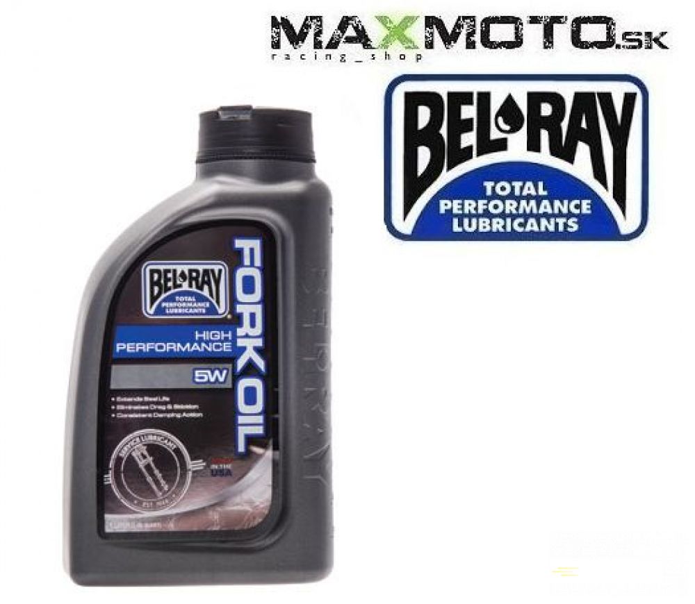 Tlmičový olej BEL RAY High Performance Fork Oil - je vyvinutý pre predné vidlice motocyklov vrátane tých, ktoré používajú cartridge a dvojkomorové systémy. Olej je vhodný na použitie pre všetky odpružené vidlice najmä však pre tie, ktoré používajú cartridge a dvojkomorové systémy. Vďaka špecifickému zloženiu vysoko viskóznych základových olejov sa znižuje upadanie a tak poskytuje bezchybnú prevádzku v širokom rozsahu teplôt. Eliminuje statické trenie a odpor vzduchu a zároveň výrazne zlepšuje tlmiacu vlastnosť vidlice.