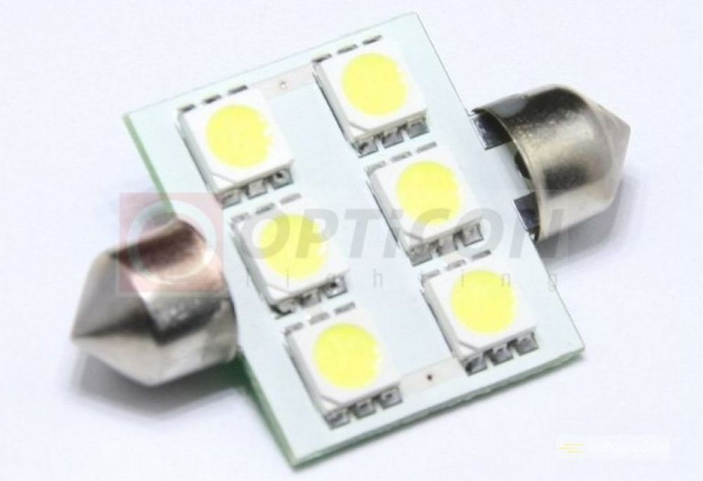 Led žiarovka - 39mm 6xSMD5050 C5W C10W - má viac ako 2- krát silnejšie svetlo oproti klasickým žiarovkám. Cena za 1 ks.